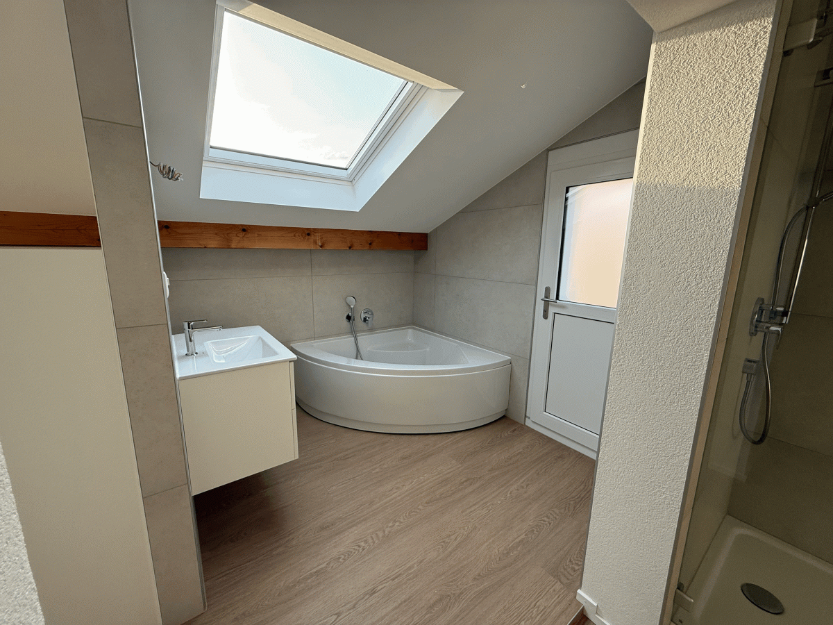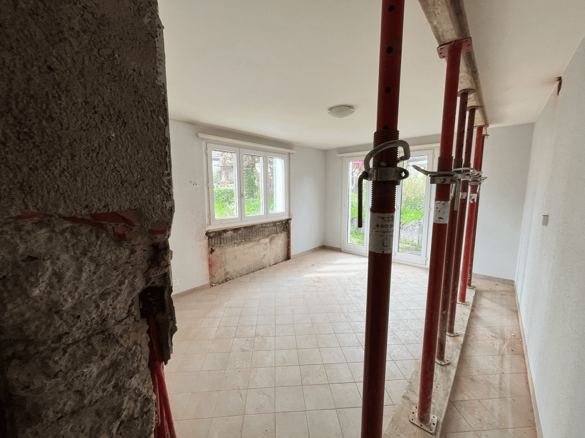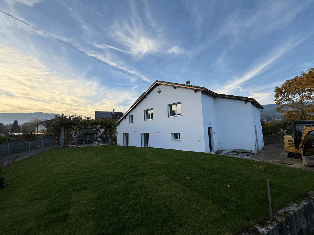 Cette villa individuelle de 5,5 pièces, située à Colombier, construite en 1959, a été complètement rénovée. Elle a été remise aux normes énergétiques actuelles avec notamment l'ajout de panneaux photovoltaïques, d'une isolation périphérique neuve, des fenêtres remplacées. L'intérieur a également été transformé intégralement. Carré Clair a financé et coordonné ce projet avec CP Services et BFree Immobilier.
